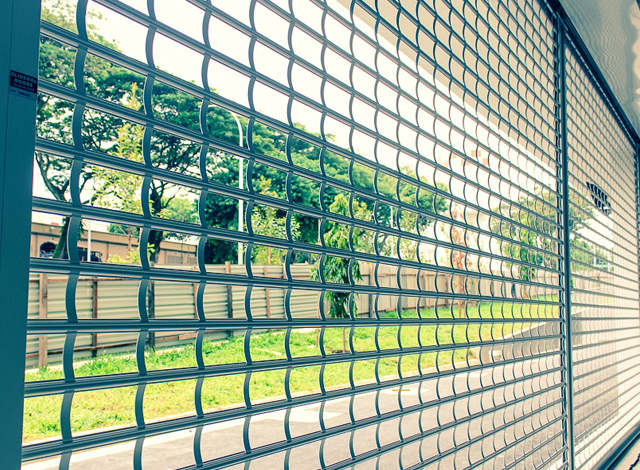 Unconventional roller grilles designed with full-length transoms and hinging vertical links that ensure the curtain will not skew and jam in the guides, our premium aluminium roller grilles will not sag after an extended period of usage, which is a common problem faced by users of conventional roller grilles.