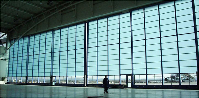 One of the most advanced and sophisticated aircraft hangar door systems in the world, the Butzbach Sliding Hangar Door won the prestigious accolade of being selected for the first Airbus 380 hangar in Toulouse, France. This door system is available in configurations that can suit almost any operational requirements. The door cladding consists of double-walled GRP panels that do not reflect radar, emits good daylight and insulates heat and sound. Customers can choose options like taildoors, vehicle pass doors and personnel access doors when customising this door system.