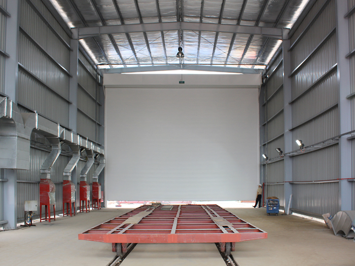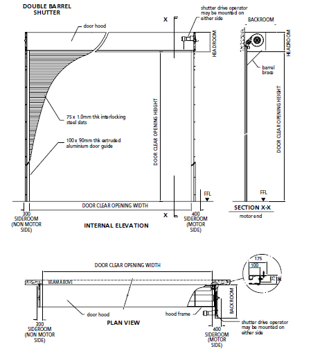 The door curtain is made up of sturdily designed galvanized steel scroll-profiled interlocking slats, 75mm high x 1.0mm or 1.2mm thick. For wider doors, 80mm x 20mm thick double skin cavity slats are used for extra rigidity.
