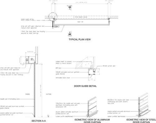 For Steel Insulated Shutters, the door curtain consists of 80mm x 20mm thick double-walled steel roll-formed cavity slats. The cavity is filled with high purity ceramic fiber blanket insulation material.