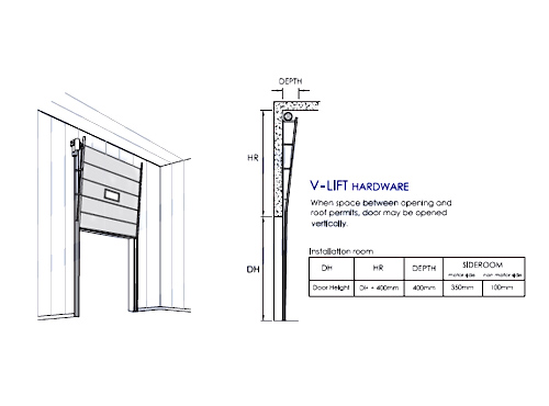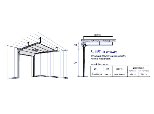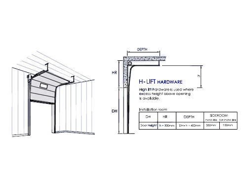Incorporating the doors into the openings is made easier with the flexibility of routing the door-travel to suit. The S-Lift drives the door up-and-over, resting parallel to the ceiling. The H-lift offers the option of driving the door higher up before turning. This is useful in buildings with higher headroom, and where you need to avoid wall-mounted fittings like electrical trunkings and crane beams. And if lots of head room is available, the V-lift drives the door straight up, resting neatly along the wall.