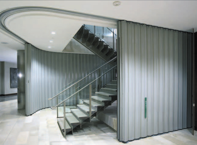 The Won-Door FireGuard fire-rated accordion door has a tested capability of 180 minutes fire integrity, conforming to America standards and assessed to Singapore standards. The accordion door is FM-approved and Vision Lites can be added to aid firefighters. Its layout can be straight or curved, with no bottom tracks needed. This product has fire egress features which have been laboratory tested to conform to the American UBC, IBC and NFPA requirements. It provides easier fire escape for the disabled as compared to hinged fi re doors which are required to be fitted with door closers.